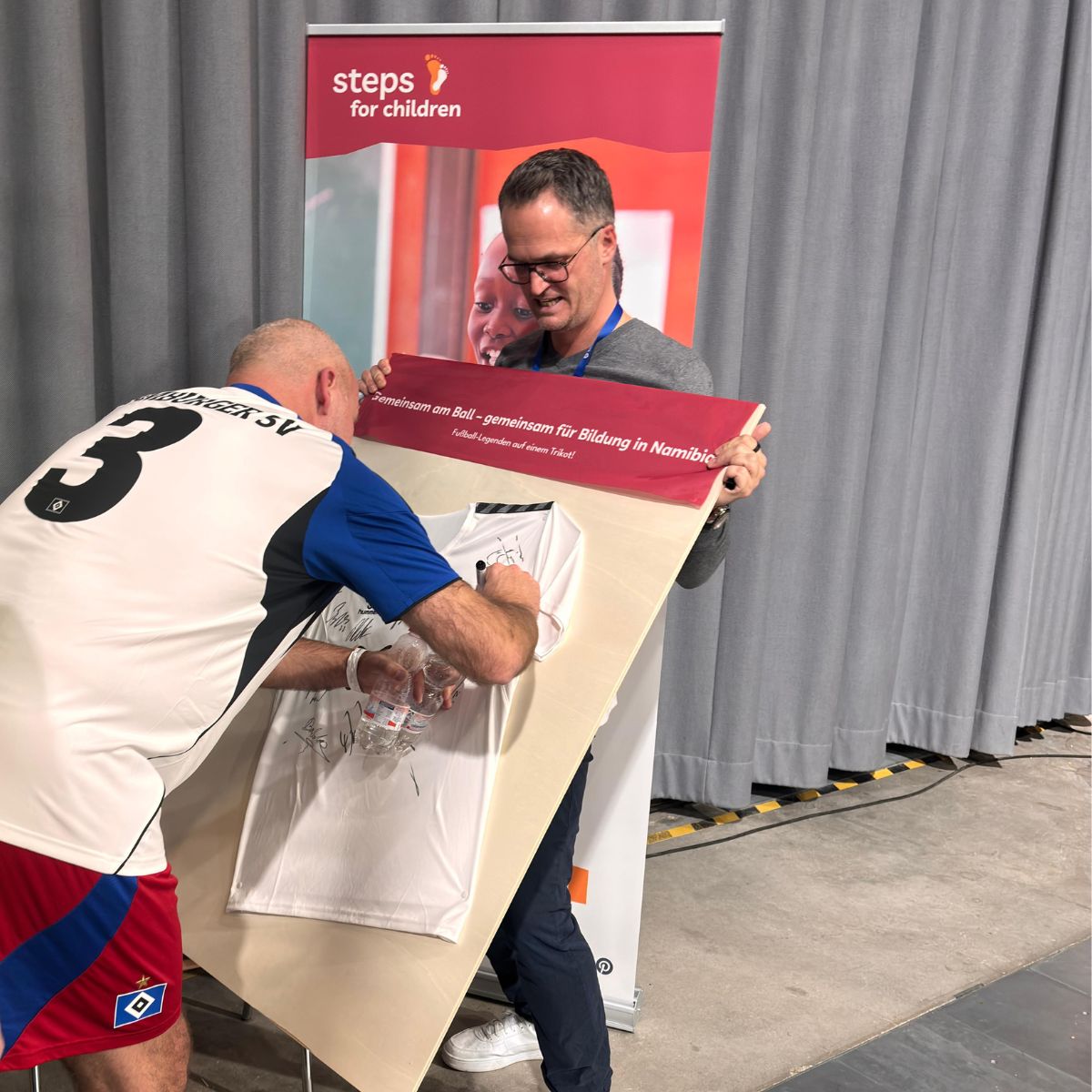 Initiiert und engagiert umgesetzt wurde die Fußball-Trikot-Verlosung von unserem langjährigen Unterstützer Simon Vollmer. Er war bereits mehrfach in Namibia, hat dort unsere steps Kinder an den Standorten kennengelernt und seitdem mit viel Herz und Einsatz Großes bewegt. Gemeinsam mit seinem Geschäftspartner organisiert er bereits seit neun Jahren ein Charity-Golfturnier, dessen Erlöse den Kindern in Namibia zugutekommen.