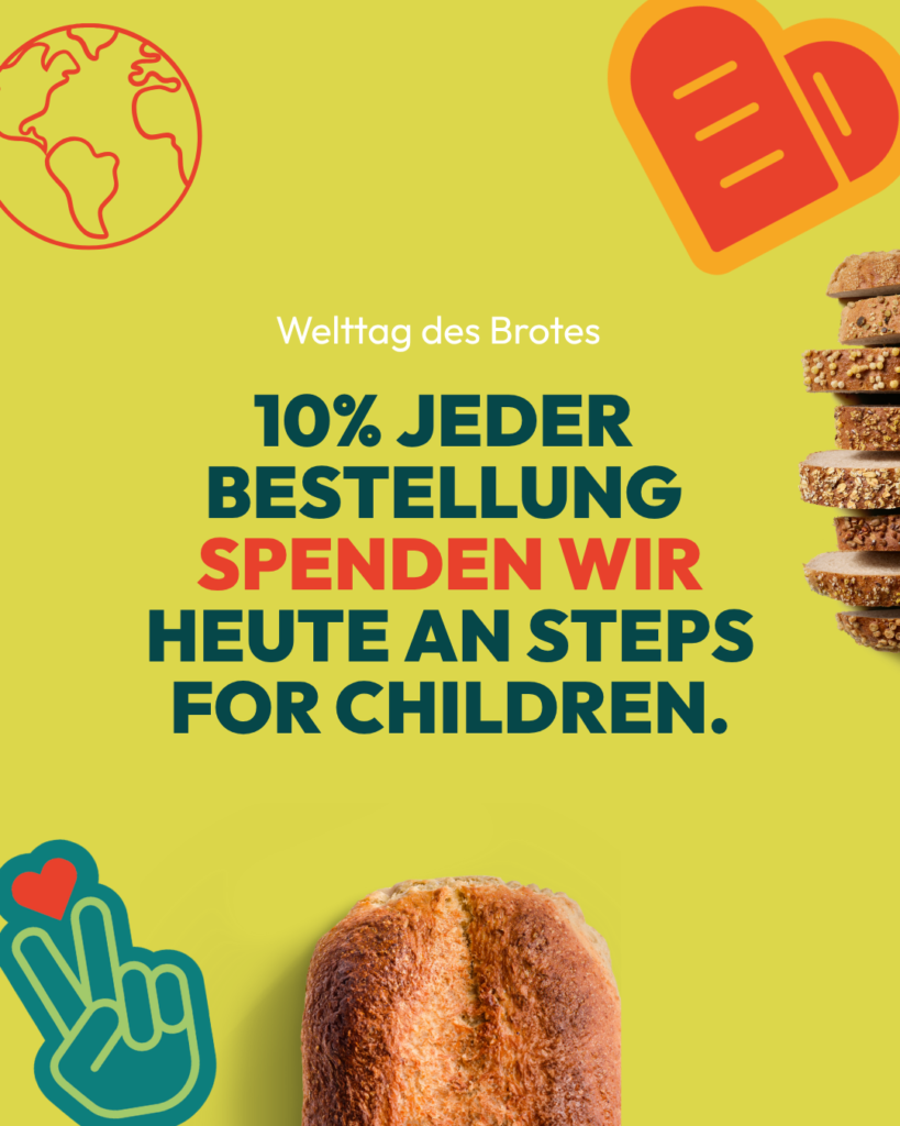 Am Welttag des Brotes hat Brotrausch eine Aktion zugunsten von steps ins Leben gerufen und 10% ihrer von jeder Bestellung an steps gespendet, die an diesem Tag gemacht wurden. Dabei kam ein toller dreistelliger Betrag zusammen, für den wir herzlich danken!