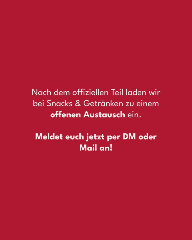Vor und nach dem offiziellen Teil laden wir herzlich zu einem Get-together bei Snacks und Getränken ein. Es ist eine schöne Gelegenheit, miteinander ins Gespräch zu kommen, Fragen zu stellen und sich mit anderen Engagierten auszutauschen. Die Teilnahme ist sowohl vor Ort in Hamburg als auch online über Zoom möglich. Der Zugangslink wird rechtzeitig auf unserer Website veröffentlicht.